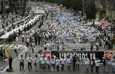 在哥倫比亞國慶節(jié),100多萬人在各地舉行游行,要求左派叛軍釋放手中人質(zhì)