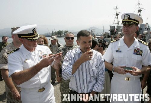 當(dāng)天,格魯吉亞在巴統(tǒng)港舉行歡迎儀式,格國(guó)防部長(zhǎng)克澤拉什維利及美國(guó)駐格大使館代表出席。