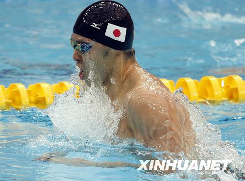 8月14日,日本選手北島康介在男子200米蛙泳決賽中,他以2分07秒64的成績奪得金牌,并打破奧運(yùn)會(huì)紀(jì)錄。當(dāng)日,北京奧運(yùn)會(huì)游泳比賽在國家游泳中心“水立方”繼續(xù)舉行。 新華社記者費(fèi)茂華攝