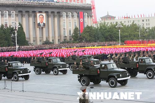 9月9日,裝備火箭炮的車輛在朝鮮首都平壤的金日成廣場上接受檢閱。朝鮮國防委員會、人民武力部和勞動黨平壤市委員會當日在平壤金日成廣場舉行工農赤衛(wèi)隊閱兵式,熱烈慶祝朝鮮建國60周年。新華社記者 張濱陽 攝