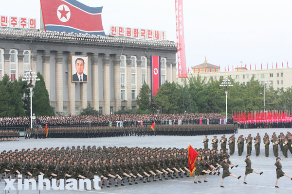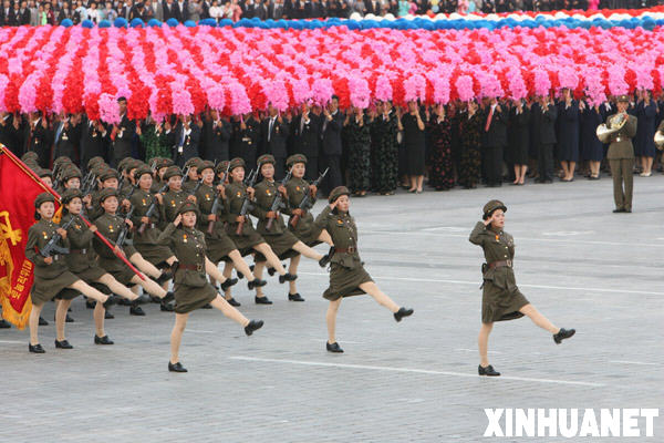 9月9日,朝鮮首都平壤的金日成廣場上一片歡騰。朝鮮國防委員會、人民武力部和勞動黨平壤市委員會當日在平壤金日成廣場舉行工農(nóng)赤衛(wèi)隊閱兵式,熱烈慶祝朝鮮建國60周年。 新華社記者 張濱陽 攝