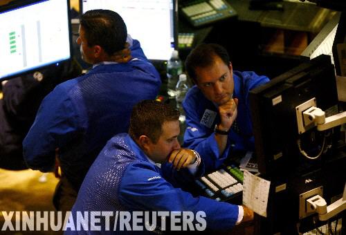 9月22日,交易員在美國紐約證券交易所查看行情。由于投資者對美國政府大規(guī)模的金融救助計劃心存疑慮以及國際油價前所未有的暴漲打壓市場,當(dāng)天紐約股市三大股指再次暴跌。道瓊斯指數(shù)下挫近380點,標(biāo)普和納斯達克跌幅均在4%左右。 新華社/路透