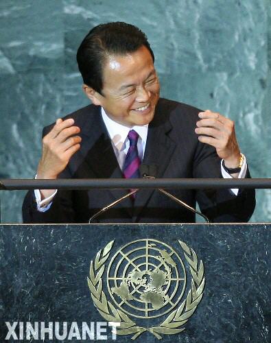 9月25日,在美國紐約聯(lián)合國總部,參加聯(lián)大一般性辯論的日本首相麻生太郎用日語講了幾分鐘后得知大會(huì)的日語翻譯未就位,臺(tái)下代表聽不懂他說什么時(shí)不禁有些尷尬地啞然失笑。當(dāng)日,第63屆聯(lián)大一般性辯論進(jìn)入第三天。 新華社記者 侯俊 攝
