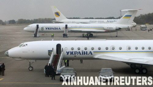 10月2日,烏克蘭總統(tǒng)尤先科乘坐的飛機(前)停在首都基輔的鮑里斯波爾機場。烏政府發(fā)言人說,當(dāng)天因技術(shù)原因尤先科乘坐的飛機在鮑里斯波爾機場緊急著陸,無人受傷。烏總理季莫申科稱,尤先科因其飛機出現(xiàn)技術(shù)故障,改乘她的飛機(中)飛往烏克蘭西部,耽誤了季莫申科飛往莫斯科進行談判的行程。 新華社/路透