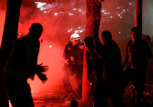 黑山首都波德戈里察,反對(duì)科索沃獨(dú)立的示威者與警方發(fā)生沖突。