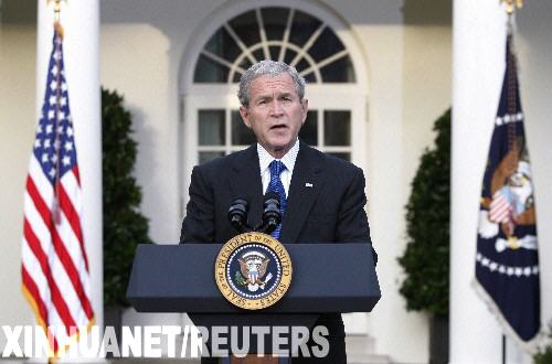 圖為10月14日,美國總統(tǒng)布什在華盛頓白宮發(fā)表講話。布什當天宣布,作為7000億美元救市計劃的具體舉措,政府將動用其中的2500億美元直接購買金融機構(gòu)股份,以此促進金融市場恢復(fù)運轉(zhuǎn)。 新華社/路透