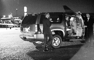10月25日傍晚,新墨西哥州,結(jié)束了一天的競選宣傳活動,奧巴馬準(zhǔn)備乘車奔向下一個起點。