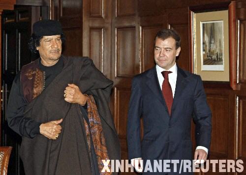 梅德韋杰夫對卡扎菲說:“我們兩國需要共同討論經濟問題、在國際政治領域中的協(xié)作問題以及兩國關系中的重大事項,并協(xié)調在很多問題上的立場。”