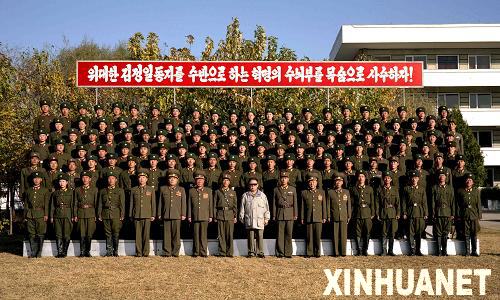 朝鮮媒體5日報道說,朝鮮最高領(lǐng)導(dǎo)人金正日視察了人民軍的兩支部隊,并觀看了軍事訓(xùn)練表演。報道說,金正日視察了人民軍534部隊的訓(xùn)練場,在視察人民軍2200部隊時,他登上觀禮臺觀看了戰(zhàn)士的軍事訓(xùn)練。金正日強(qiáng)調(diào)人民軍部隊要十分重視對戰(zhàn)士的軍事和政治培訓(xùn)。視察結(jié)束后,金正日與兩支部隊的官兵合影。這是金正日與人民軍2200部隊官兵合影(拍攝日期不詳)。新華社/朝中社