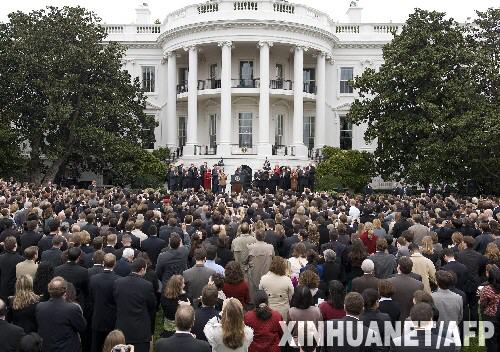 11月6日,美國總統(tǒng)布什在華盛頓白宮南草坪與工作人員見面并發(fā)表講話。美國總統(tǒng)布什當(dāng)日說,他將于10日和當(dāng)選總統(tǒng)奧巴馬在白宮會談,主要議題包括金融危機(jī)和伊拉克戰(zhàn)爭。 新華社/法新