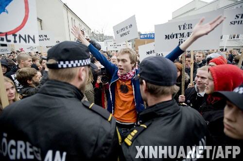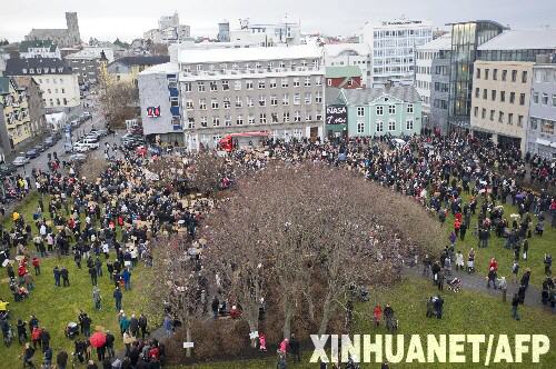 11月8日,在冰島首都雷克雅未克,民眾聚集在街頭舉行抗議活動,呼吁銀行公開更多金融危機信息,并要求政府辭職。當(dāng)天的抗議活動有三至四千人參加,這也是當(dāng)?shù)孛癖娺B續(xù)第四個周六在雷克雅未克舉行抗議,每周參與的人數(shù)都在增加。 新華社/法新