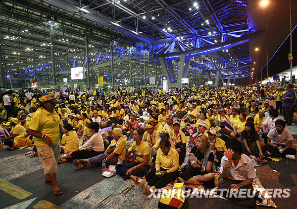 11月25日,泰國反政府的人民民主聯(lián)盟(民盟)示威者在曼谷素萬那普國際機場舉行大規(guī)模集會。新華社/路透