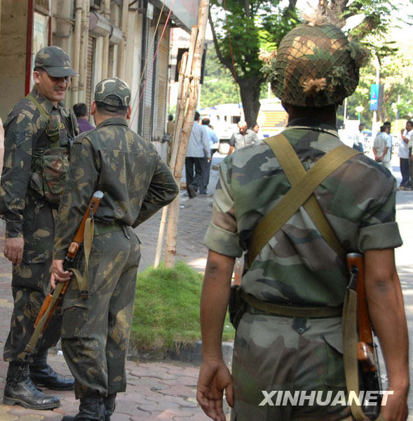 新華社記者在現(xiàn)場看到,印度海軍陸戰(zhàn)隊隊員從在納里曼大樓上空盤旋多時的武裝直升機上空降到大樓樓頂。目前,印度軍警和武裝分子仍然在納里曼大樓內(nèi)進行激戰(zhàn),槍聲十分密集。早些時候,這里曾連續(xù)發(fā)生多起爆炸事件。