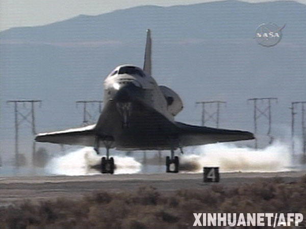 美國(guó)西部時(shí)間11月30日13點(diǎn)25分左右(北京時(shí)間12月1日凌晨5時(shí)25分左右),美國(guó)“奮進(jìn)”號(hào)航天飛機(jī)載著7名宇航員安全降落在加利福尼亞州愛(ài)德華茲空軍基地(美國(guó)宇航局電視畫(huà)面)。由于天氣原因,“奮進(jìn)”號(hào)著陸地點(diǎn)由原定的佛羅里達(dá)州肯尼迪航天中心改為加州愛(ài)德華茲空軍基地。 新華社/法新