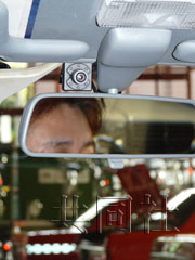 東京榮泉交通公司在出租車(chē)內(nèi)的后視鏡上方安裝了監(jiān)控?cái)z像頭。(共同社)