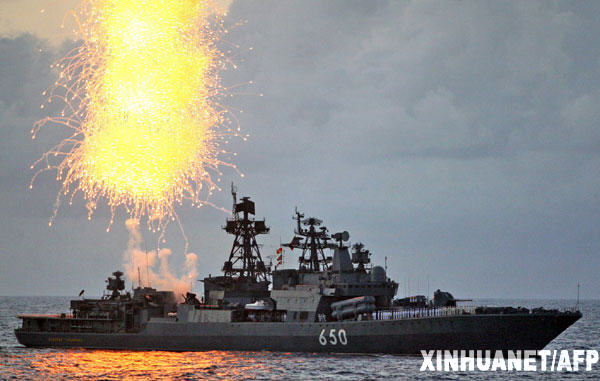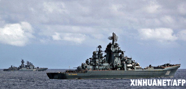 12月2日,在委內(nèi)瑞拉境內(nèi)的加勒比海域,俄羅斯“恰巴年科海軍上將”號(hào)大型反潛艦參加委內(nèi)瑞拉和俄羅斯舉行的海上聯(lián)合軍演。委俄兩國(guó)于12月1日至3日在加勒比海舉行代號(hào)為“委俄2008”的聯(lián)合軍事演習(xí)。據(jù)悉,1600名俄羅斯軍人和700名委內(nèi)瑞拉軍人參加演習(xí)。新華社/法新