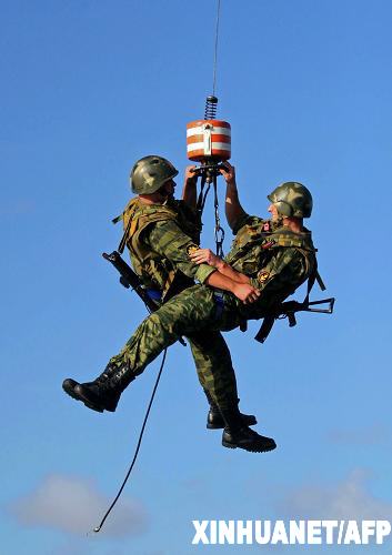 12月2日,在委內(nèi)瑞拉境內(nèi)的加勒比海域舉行的委俄海上聯(lián)合軍演中,委內(nèi)瑞拉士兵觀看一架俄羅斯的卡默夫Ka-27蝸牛式反潛直升機(jī)。委內(nèi)瑞拉和俄羅斯兩國(guó)于12月1日至3日在加勒比海舉行代號(hào)為“委俄2008”的聯(lián)合軍事演習(xí)。據(jù)悉,1600名俄羅斯軍人和700名委內(nèi)瑞拉軍人參加演習(xí)。 新華社/法新