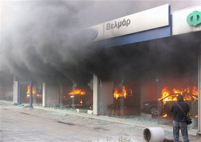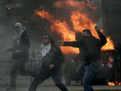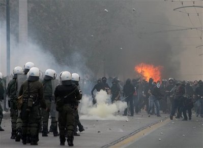 在雅典和北部的薩洛尼卡市中心,大群學生組成的示威隊伍向銀行、商店和車輛投擲燃燒瓶,警察不得不使用催淚瓦斯驅(qū)散示威人群。帕特拉斯、克里特島和科孚島也有騷亂發(fā)生。