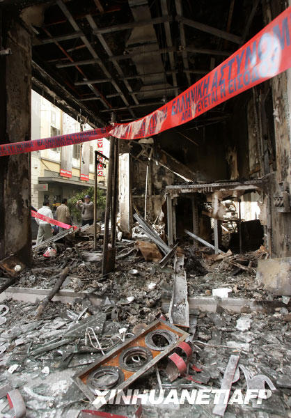 12月7日,在希臘首都雅典,一個商店在騷亂中被完全毀壞。新華社/法新