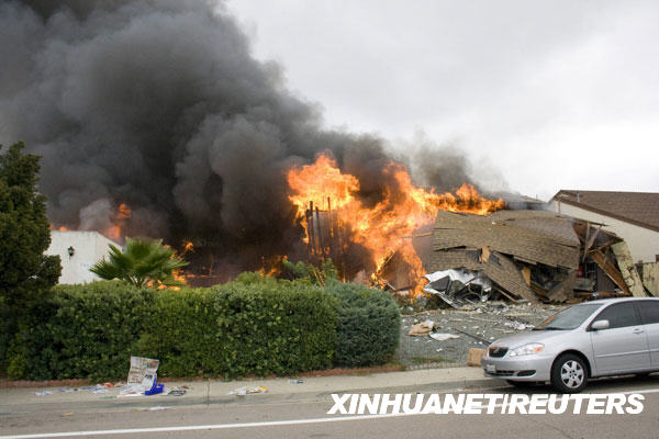 12月8日,墜毀的F/A-18D戰(zhàn)斗機(jī)導(dǎo)致美國(guó)加利福尼亞州圣迭戈大學(xué)城區(qū)域房屋燃燒。當(dāng)日,這架軍用飛機(jī)在此墜毀,導(dǎo)致兩人死亡,一些房屋受損。新華社/路透