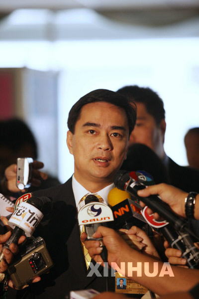 12月8日,泰國民主黨主席阿披實(shí)在曼谷的國會(huì)大廈內(nèi)接受媒體采訪。 目前,民主黨主席阿披實(shí)已被提名為民主黨等主要反對(duì)黨的總理候選人,并很有可能被推選為聯(lián)合政府總理。新華社記者牛曉雷攝