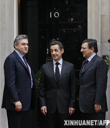 2008年12月9日 歐洲領(lǐng)導(dǎo)人呼吁推動簽署世貿(mào)協(xié)定刺激經(jīng)濟復(fù)蘇 12月8日,英國首相布朗(左)、法國總統(tǒng)薩科齊(中)和歐盟委員會主席巴羅佐(右)在倫敦首相官邸前合影。三方當(dāng)日舉行經(jīng)濟峰會,一致同意通過推動簽署世界貿(mào)易協(xié)定向貿(mào)易保護主義發(fā)出信號,以應(yīng)對全球金融危機。 新華社/法新
