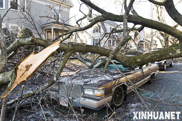 12月13日,在美國馬薩諸塞州伍斯特市,一輛汽車被在冰風(fēng)暴中倒下的樹木砸毀。一場冰風(fēng)暴12日登陸美國新英格蘭地區(qū),造成包括馬薩諸塞州在內(nèi)的大范圍電力供應(yīng)中斷和道路交通受阻。美國總統(tǒng)布什13日宣布,遭遇嚴(yán)重冰風(fēng)暴災(zāi)害的馬薩諸塞州北部進(jìn)入緊急狀態(tài)。 新華社發(fā)