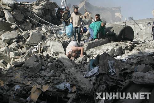12月28日,在加沙城遭受以色列軍空襲的廢墟上,巴勒斯坦人在尋找幸存者。當(dāng)日,以軍繼續(xù)對(duì)加沙地帶實(shí)施空襲。以色列戰(zhàn)機(jī)從27日開(kāi)始向加沙地帶發(fā)動(dòng)大規(guī)?找u,迄今已造成至少271人死亡、900多人受傷。加沙急救機(jī)構(gòu)稱(chēng),這是自1967年中東戰(zhàn)爭(zhēng)以來(lái)以軍襲擊所造成的巴勒斯坦人單日死亡人數(shù)最多的一次。新華社發(fā)