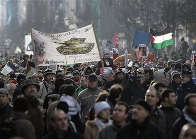 歐洲兩個最大規(guī)模的示威活動分別在英國倫敦以及法國巴黎進(jìn)行。在英國首都倫敦,憤怒的示威者同警方發(fā)生沖突。他們向駐守在以色列大使館外的警員拋擲木棍和石頭,企圖撤除他們所形成的路障,結(jié)果有24人被逮捕。