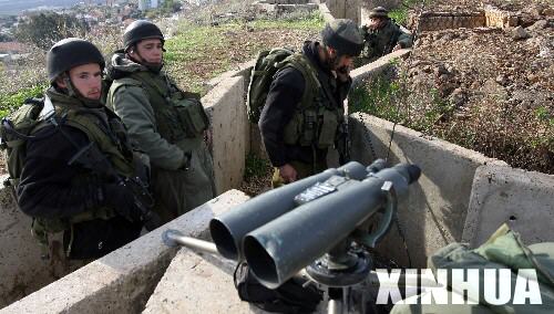 1月14日,幾名以色列士兵在以色列和黎巴嫩邊境地區(qū)警戒。黎巴嫩媒體當(dāng)日報道,黎境內(nèi)不明身份武裝人員當(dāng)天上午從黎南部向以色列境內(nèi)發(fā)射了兩枚“喀秋莎”火箭彈,以軍隨后向黎巴嫩境內(nèi)發(fā)射了4枚炮彈進行還擊。 新華社發(fā)