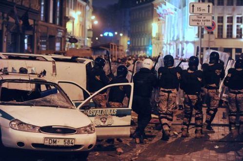 13日,近萬人走上拉脫維亞首都里加的街頭舉行抗議示威,要求政府在嚴(yán)重的經(jīng)濟(jì)危機(jī)下立即辭職并舉行大選。