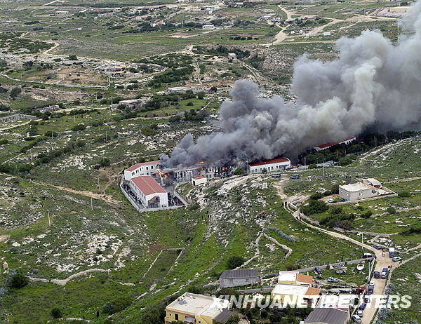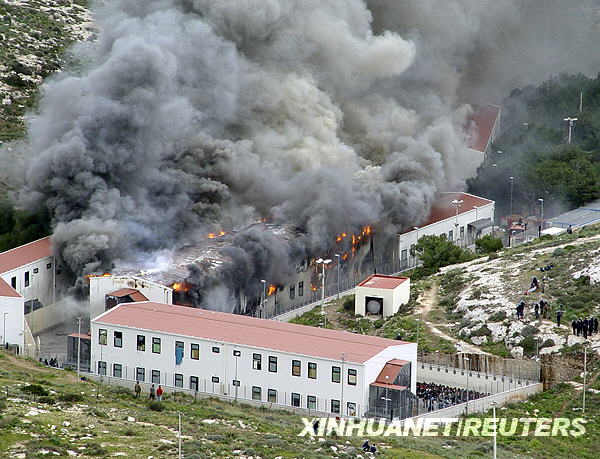 據(jù)當?shù)鼐椒Q,當天,一些被拘留在此的非法移民試圖逃跑失敗后,便縱火焚燒該收容中心,造成多人受傷。新華社/路透
