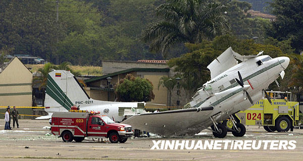 2月18日,在哥倫比亞麥德林的一個(gè)機(jī)場,一架發(fā)生爆炸的飛機(jī)殘骸癱在停機(jī)坪上。當(dāng)天,哥倫比亞國家警察的一架DC-3飛機(jī)在麥德林一個(gè)機(jī)場發(fā)生爆炸,造成至少8名警察受傷。新華社/路透