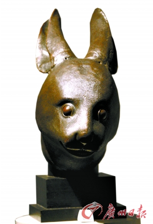 2月21日在巴黎大皇宮預(yù)展中的兔首銅像(圖片來源:廣州日?qǐng)?bào))