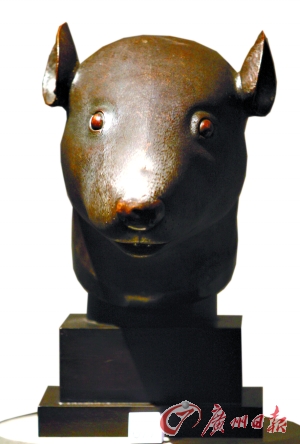 2月21日在巴黎大皇宮預(yù)展中的鼠首銅像(圖片來源:廣州日?qǐng)?bào))