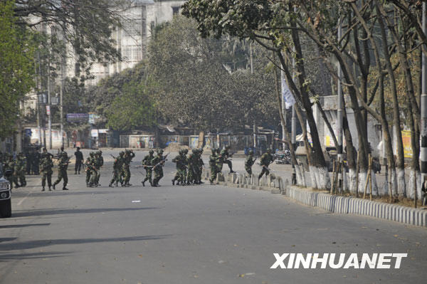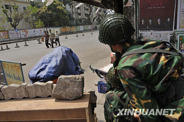 2月25日,孟加拉國(guó)軍人在首都達(dá)卡警戒。新華社發(fā)(扎曼攝)