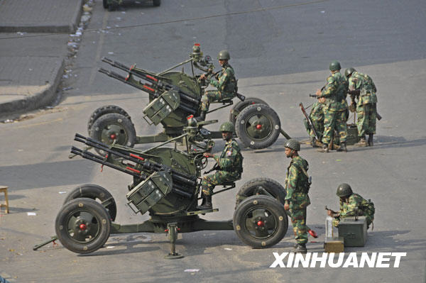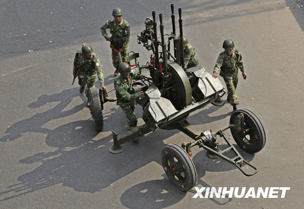 2月25日,孟加拉國(guó)軍人在首都達(dá)卡部署防空武器。新華社發(fā)(扎曼攝)