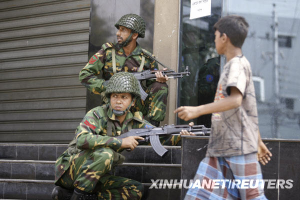當(dāng)天上午,“孟加拉國(guó)步槍隊(duì)”總部發(fā)生槍戰(zhàn),目前已造成至少1人死亡、13人受傷。新華社發(fā)(扎曼攝)