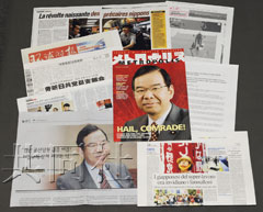照片為介紹日本共產(chǎn)黨及該黨委員長志位和夫的外國媒體。(共同社)