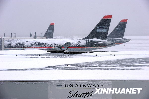 3月2日,在紐約拉瓜迪亞機(jī)場(chǎng),飛機(jī)停落在停機(jī)坪上。新華社記者谷欣容攝