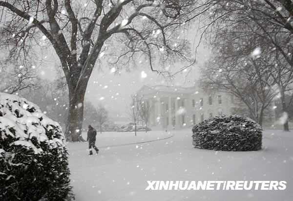 3月2日,大雪將美國(guó)白宮的南草坪覆蓋。新華社/路透