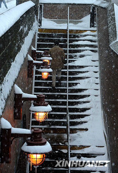 3月2日,一位乘客從紐約中央公園附近的一個(gè)地鐵站內(nèi)走出。1日起襲擊紐約的強(qiáng)降雪在2日上午達(dá)到23厘米。新華社記者申宏攝