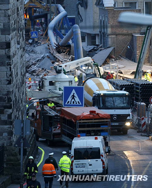 當(dāng)天,科隆城市歷史檔案館及其鄰近的兩棟建筑物倒塌,造成9人失蹤,停在建筑物旁的多輛汽車被埋在瓦礫下。新華社/路透