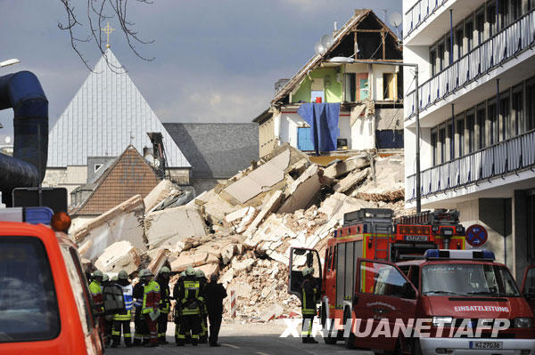 3月3日,在德國西部城市科隆,救援人員來到發(fā)生房屋倒塌事故的現(xiàn)場(chǎng)。新華社/法新