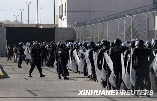 墨西哥一名政府官員說,華雷斯市一座監(jiān)獄內(nèi)的囚犯當(dāng)日發(fā)生暴動,至少20名囚犯在暴動中死亡,另有多人受傷。新華社/路透