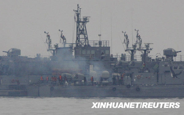 3月9日,參加演習(xí)的韓國海軍的軍艦在延平島海域拋錨。新華社/路透