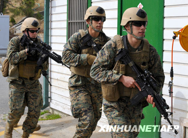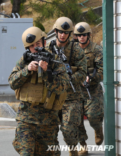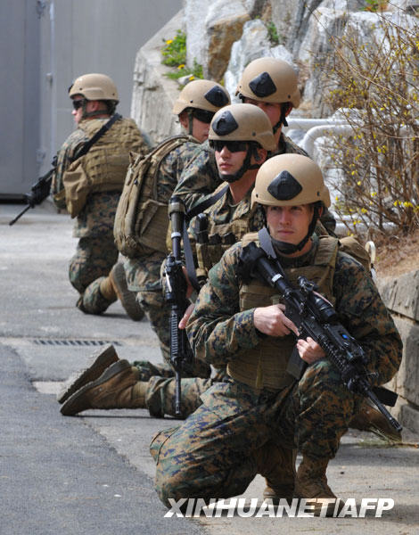 3月9日,在韓國首都首爾東南410公里的鎮(zhèn)海美軍基地,美國海軍陸戰(zhàn)隊太平洋反恐安全小組參加演習(xí)。