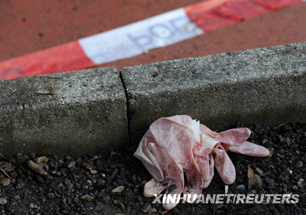 3月11日,在發(fā)生槍擊案的德國斯圖加特市附近小鎮(zhèn)溫嫩登一所名為艾伯特維爾的中學外,一雙沾滿血跡的手套被遺棄在地面上。新華社/路透