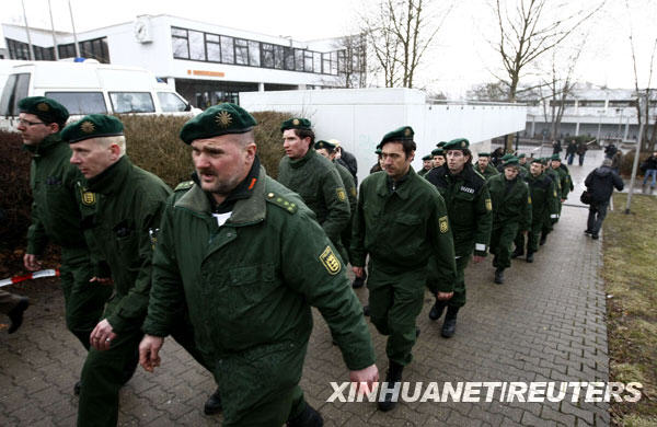 3月11日,警察在德國南部溫嫩登發(fā)生槍擊案的中學內執(zhí)勤。新華社/路透