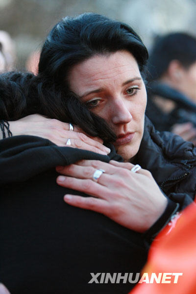 3月11日,遇害者親友們在發(fā)生槍擊案的艾伯特維爾中學附近相擁而泣。新華社記者 羅歡歡攝